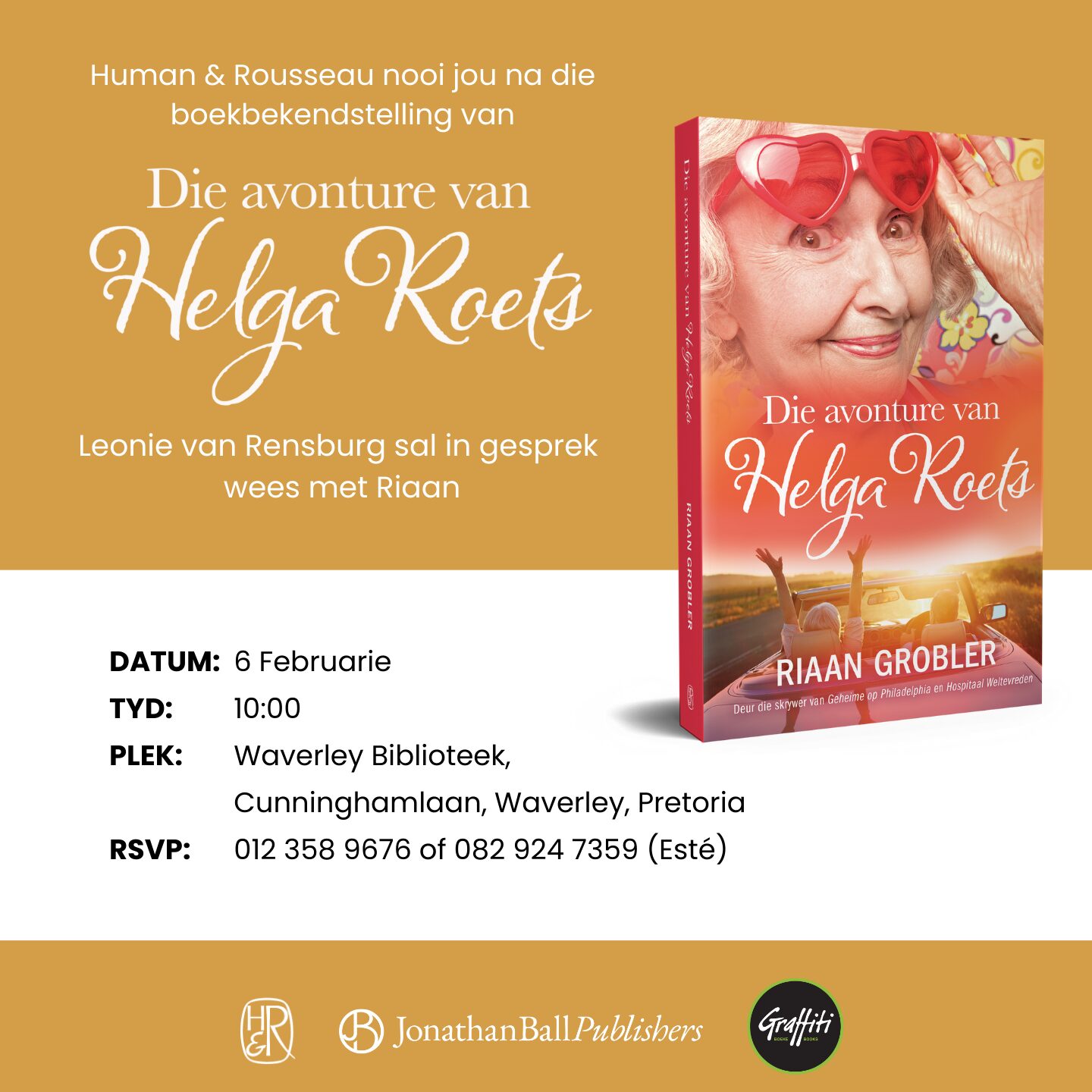 Die avonture van Helga Roets Date Feb 06 2026 Expired! Time 10:00 am - 12:00 pm Location Waverley Biblioteek Pretoria