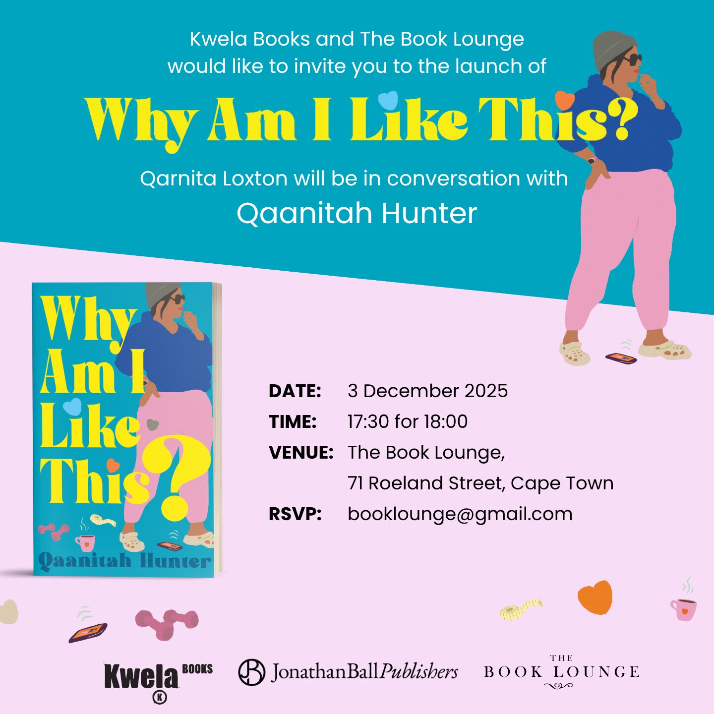 The Book Lounge: Why am I like this? Date Dec 03 2025 Expired! Time 5:30 pm - 8:00 pm Location The Book Lounge Cnr Buitenkant &, 71 Roeland St, Cape Town City Centre, Cape Town, 8001 Website https://booklounge.co.za/ Phone 021 462 2425 Organizer The Book Revue Email pippa@thebookrevue.co.za
